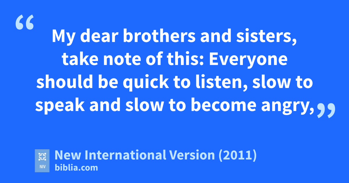 19 My dear brothers and sisters,h take note of this: Everyone should be quick to listen, slow to speaki and slow to become angry, 20 because human angerj does not produce the righteousness that God desires. 21 Therefore, get rid ofk all moral filth and the evil that is so prevalent and humbly accept the word planted in you,l which can save you.