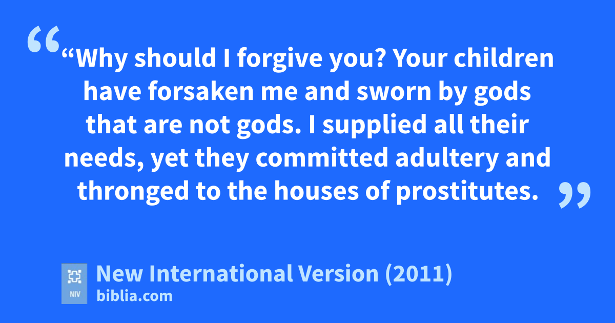 18 “Yet even in those days,” declares the Lord, “I will not destroyn you completely. 19 And when the people ask,o ‘Why has the Lord our God done all this to us?’ you will tell them, ‘As you have forsaken me and served foreign godsp in your own land, so now you will serve foreignersq in a land not your own.’