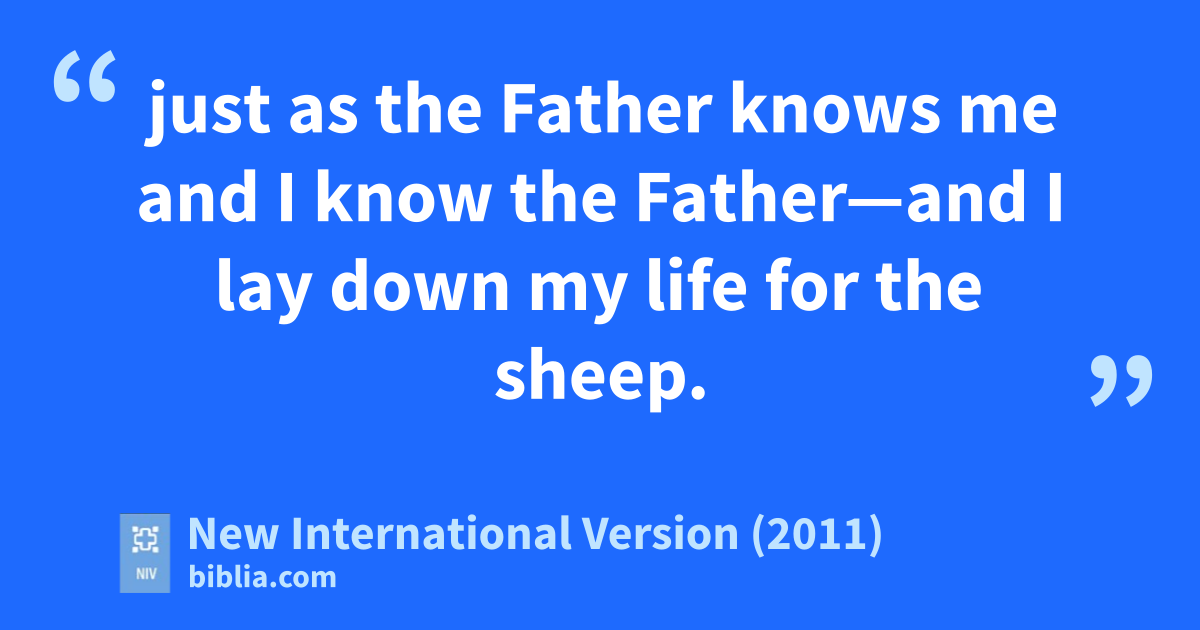 14 “I am the good shepherd;x I know my sheepy and my sheep know me—15 just as the Father knows me and I know the Fatherz—and I lay down my life for the sheep.a 16 I have other sheepb that are not of this sheep pen. I must bring them also. They too will listen to my voice, and there shall be one flockc and one shepherd.d 17 The reason my Father loves me is that I lay down my lifee—only to take it up again. 18 No one takes it from me, but I lay it down of my own accord.f I have authority to lay it down and authority to take it up again. This command I received from my Father.”g