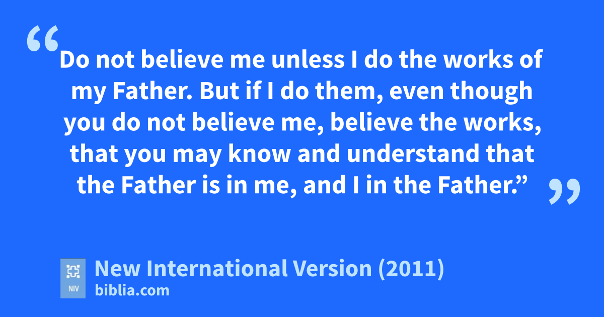 34 Jesus answered them, “Is it not written in your Law,c ‘I have said you are “gods” ’d?d 35 If he called them ‘gods,’ to whom the word of Gode came—and Scripture cannot be set asidef—36 what about the one whom the Father set apartg as his very ownh and sent into the world?i Why then do you accuse me of blasphemy because I said, ‘I am God’s Son’?j 37 Do not believe me unless I do the works of my Father.k 38 But if I do them, even though you do not believe me, believe the works, that you may know and understand that the Father is in me, and I in the Father.”l 39 Again they tried to seize him,m but he escaped their grasp.n