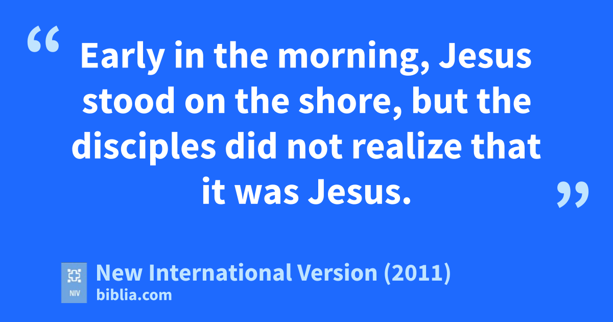 4 Early in the morning, Jesus stood on the shore, but the disciples did not realize that it was Jesus.h