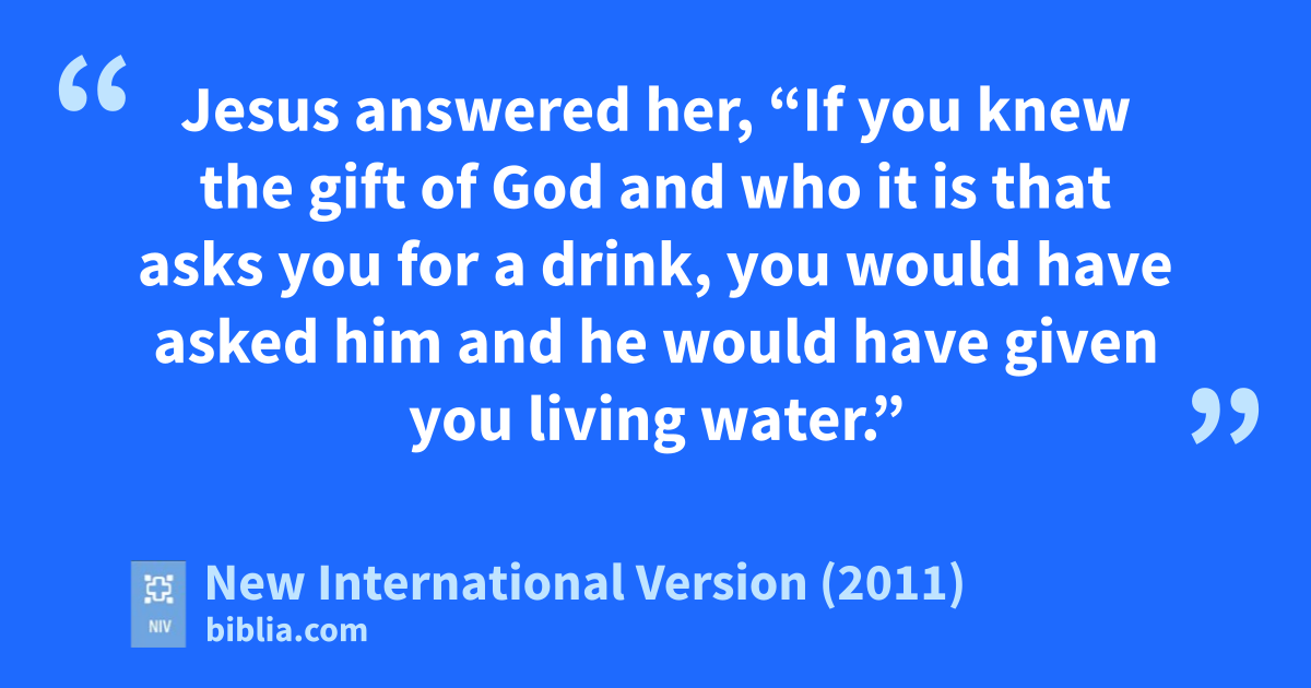10 Jesus answered her, “If you knew the gift of God and who it is that asks you for a drink, you would have asked him and he would have given you living water.”g
