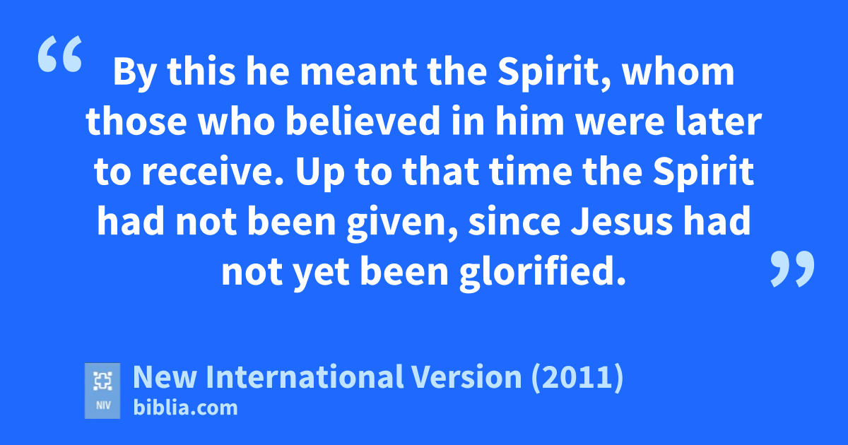 37 On the last and greatest day of the festival,x Jesus stood and said in a loud voice, “Let anyone who is thirsty come to me and drink.y 38 Whoever believesz in me, as Scripture has said,a rivers of living waterb will flow from within them.”c c 39 By this he meant the Spirit,d whom those who believed in him were later to receive.e Up to that time the Spirit had not been given, since Jesus had not yet been glorified.f