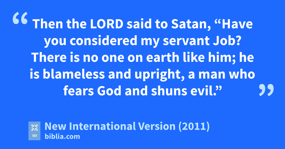 8 Then the Lord said to Satan, “Have you considered my servant Job?v There is no one on earth like him; he is blameless and upright, a man who fears Godw and shuns evil.”x