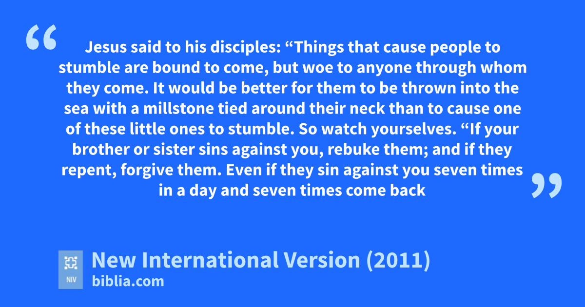 “If your brother or sistera sins against you, rebuke them;w and if they repent, forgive them.x 4 Even if they sin against you seven times in a day and seven times come back to you saying ‘I repent,’ you must forgive them.”y