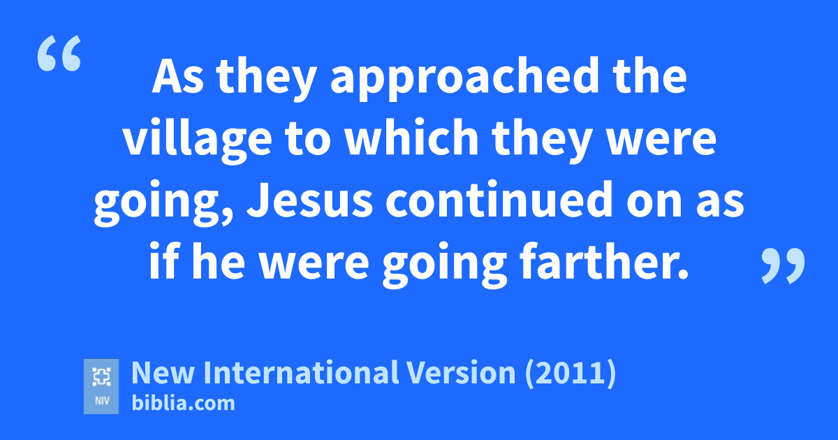 28 As they approached the village to which they were going, Jesus continued on as if he were going farther. 29 But they urged him strongly, “Stay with us, for it is nearly evening; the day is almost over.” So he went in to stay with them.