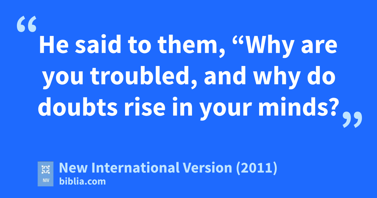 37 They were startled and frightened, thinking they saw a ghost.d 38 He said to them, “Why are you troubled, and why do doubts rise in your minds? 39 Look at my hands and my feet. It is I myself! Touch me and see;e a ghost does not have flesh and bones, as you see I have.”