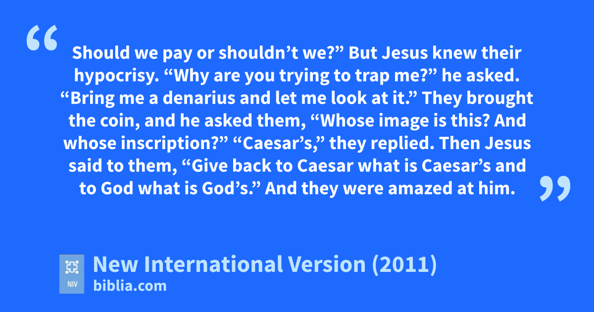 But Jesus knew their hypocrisy. “Why are you trying to trap me?” he asked. “Bring me a denarius and let me look at it.” 16 They brought the coin, and he asked them, “Whose image is this? And whose inscription?”
