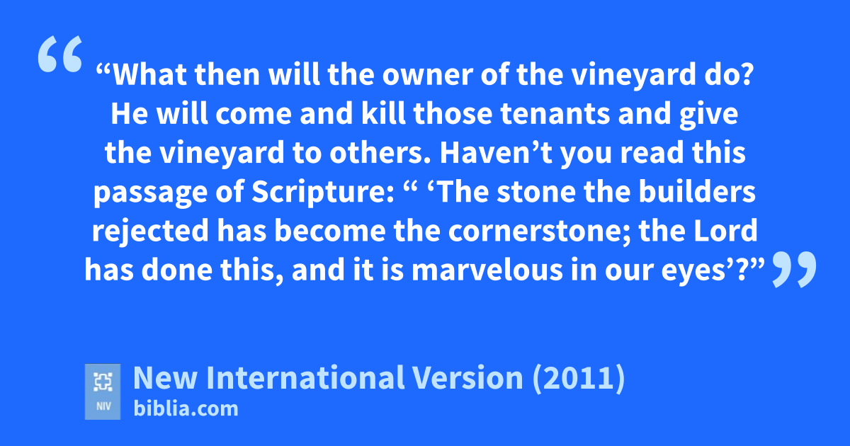 9 “What then will the owner of the vineyard do? He will come and kill those tenants and give the vineyard to others. 10 Haven’t you read this passage of Scripture:
