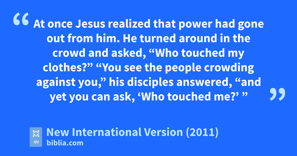 31 “You see the people crowding against you,” his disciples answered, “and yet you can ask, ‘Who touched me?’ ”