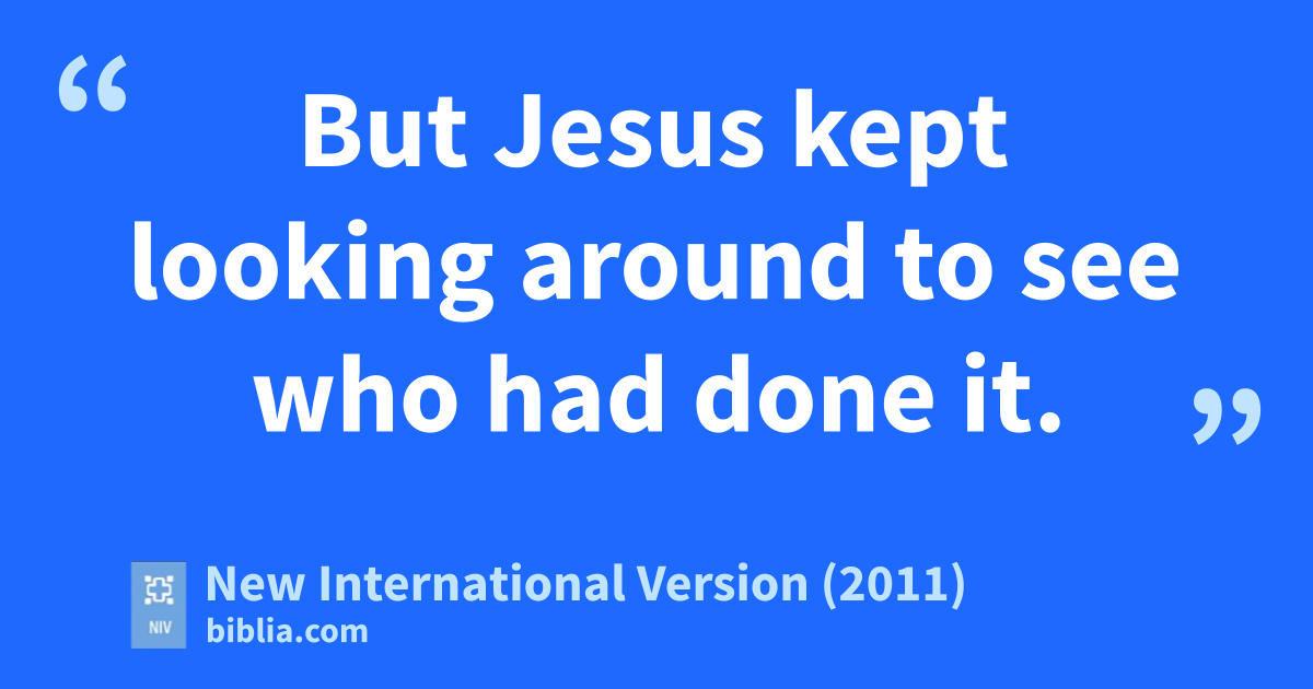 32 But Jesus kept looking around to see who had done it. 33 Then the woman, knowing what had happened to her, came and fell at his feet and, trembling with fear, told him the whole truth. 34 He said to her, “Daughter, your faith has healed you.g Go in peaceh and be freed from your suffering.”