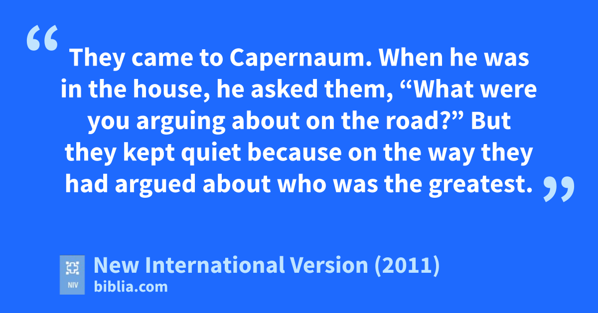 33 They came to Capernaum.l When he was in the house,m he asked them, “What were you arguing about on the road?” 34 But they kept quiet because on the way they had argued about who was the greatest.n