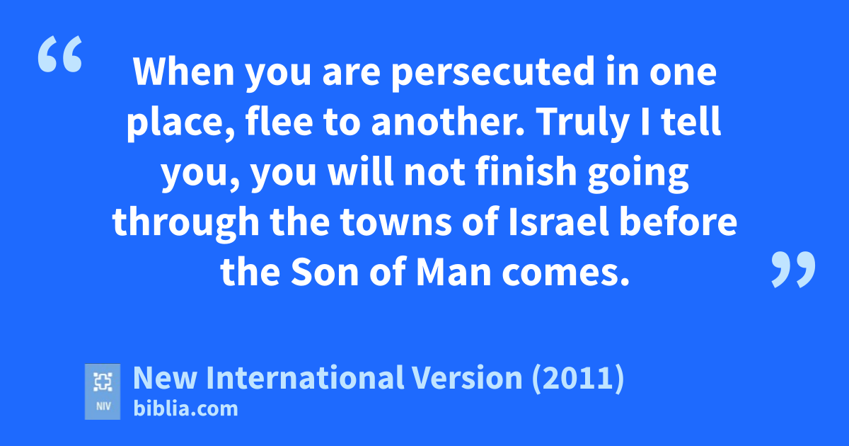 21 “Brother will betray brother to death, and a father his child; children will rebel against their parentsu and have them put to death.v 22 You will be hated by everyone because of me,w but the one who stands firm to the end will be saved.x 23 When you are persecuted in one place, flee to another. Truly I tell you, you will not finish going through the towns of Israel before the Son of Man comes.y