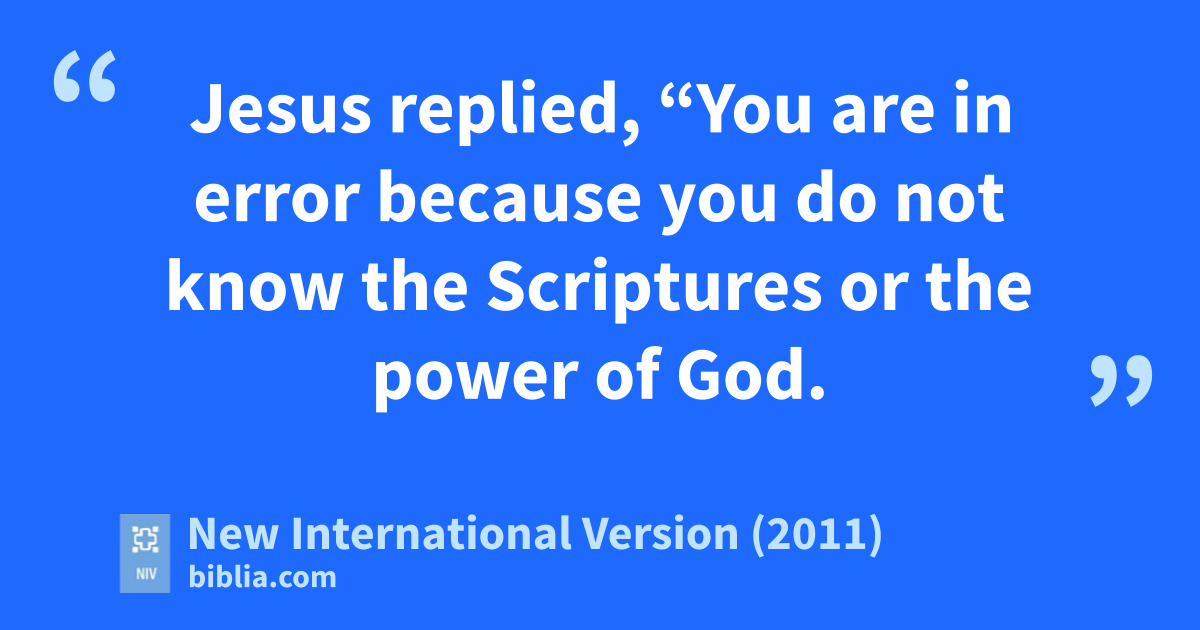 29 Jesus replied, “You are in error because you do not know the Scripturesc or the power of God. 30 At the resurrection people will neither marry nor be given in marriage;d they will be like the angels in heaven. 31 But about the resurrection of the dead—have you not read what God said to you, 32 ‘I am the God of Abraham, the God of Isaac, and the God of Jacob’b?e He is not the God of the dead but of the living.”