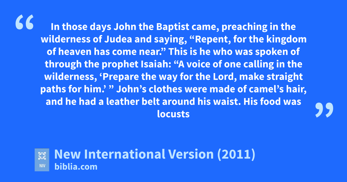 3 In those days John the Baptistz came, preaching in the wilderness of Judea 2 and saying, “Repent, for the kingdom of heavena has come near.” 3 This is he who was spoken of through the prophet Isaiah: