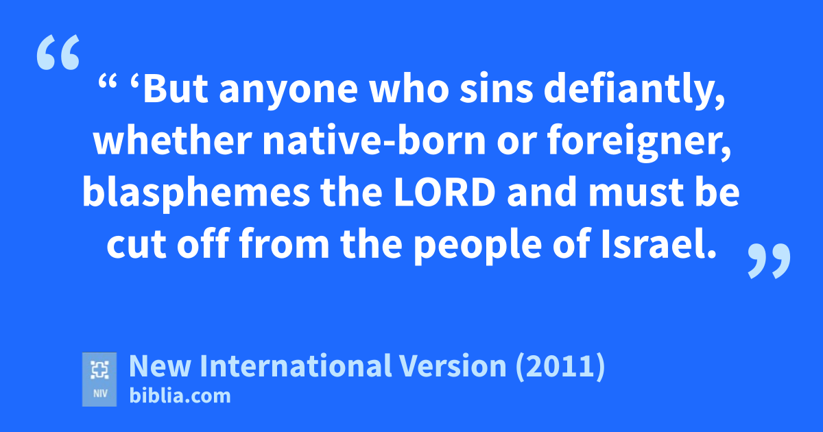 30 “ ‘But anyone who sins defiantly,g whether native-born or foreigner,h blasphemes the Lordi and must be cut off from the people of Israel.j 31 Because they have despisedk the Lord’s word and broken his commands,l they must surely be cut off; their guilt remains on them.m’ ”