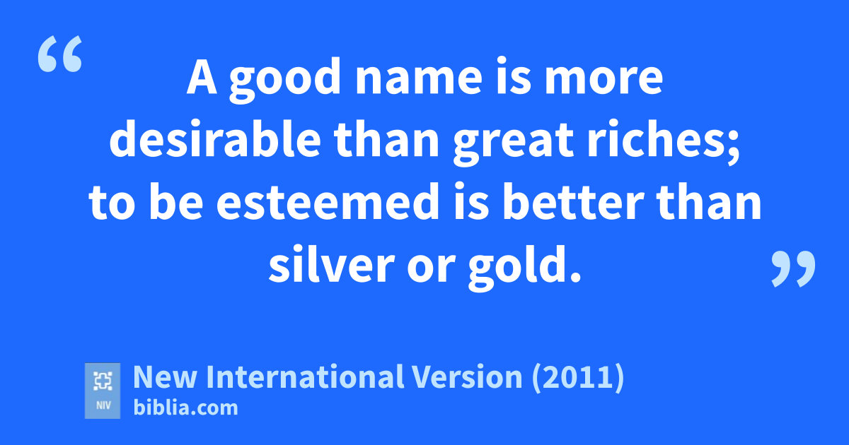 22 A good name is more desirable than great riches;