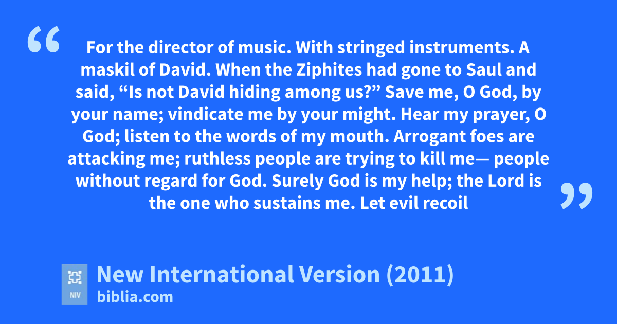 For the director of music. With stringed instruments. A maskilb of David. When the Ziphitesd had gone to Saul and said, “Is not David hiding among us?”