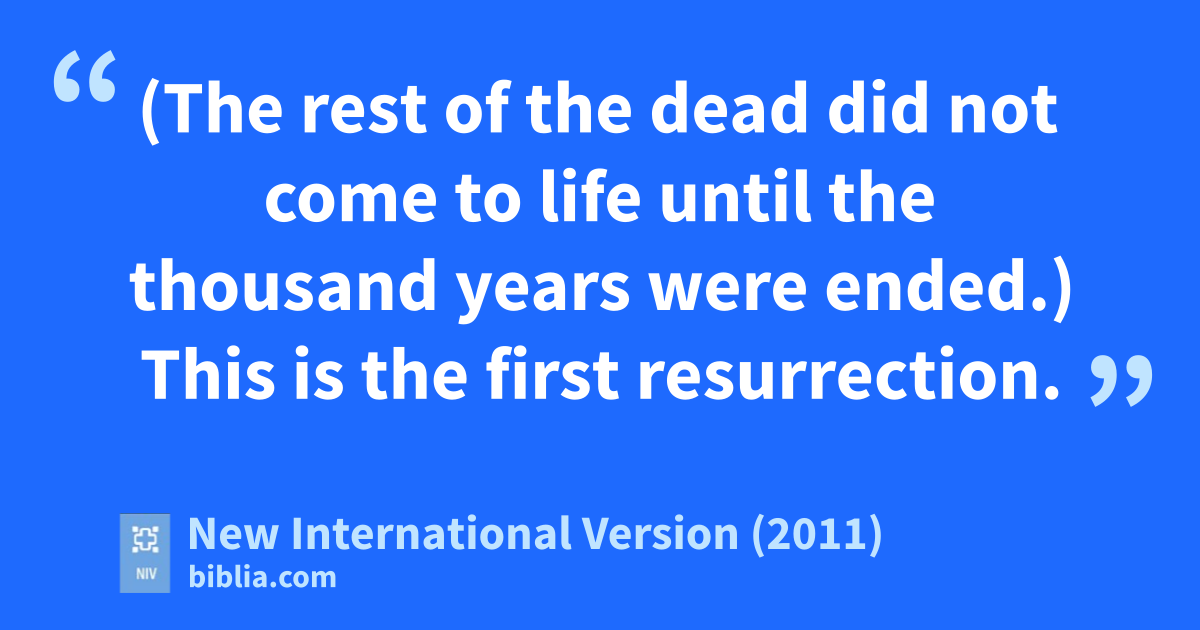 4 I saw thronesw on which were seated those who had been given authority to judge.x And I saw the souls of those who had been beheadedy because of their testimony about Jesusz and because of the word of God.a Theya had not worshiped the beastb or its image and had not received its mark on their foreheads or their hands.c They came to life and reignedd with Christ a thousand years. 5 (The rest of the dead did not come to life until the thousand years were ended.) This is the first resurrection.e 6 Blessedf and holy are those who share in the first resurrection. The second deathg has no power over them, but they will be priestsh of God and of Christ and will reign with himi for a thousand years.