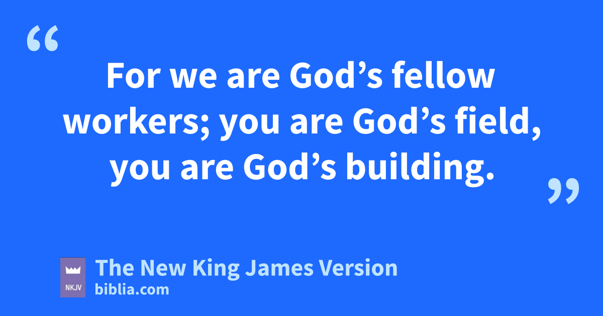 9 For jwe are God’s fellow workers; you are God’s field, you are kGod’s building. 10 lAccording to the grace of God which was given to me, as a wise master builder I have laid mthe foundation, and another builds on it. But let each one take heed how he builds on it. 11 For no other foundation can anyone lay than nthat which is laid, owhich is Jesus Christ. 12 Now if anyone builds on this foundation with gold, silver, precious stones, wood, hay, straw, 13 each one’s work will become clear; for the Day pwill declare it, because qit will be revealed by fire; and the fire will test each one’s work, of what sort it is. 14 If anyone’s work which he has built on it endures, he will receive a reward. 15 If anyone’s work is burned, he will suffer loss; but he himself will be saved, yet so as through fire.