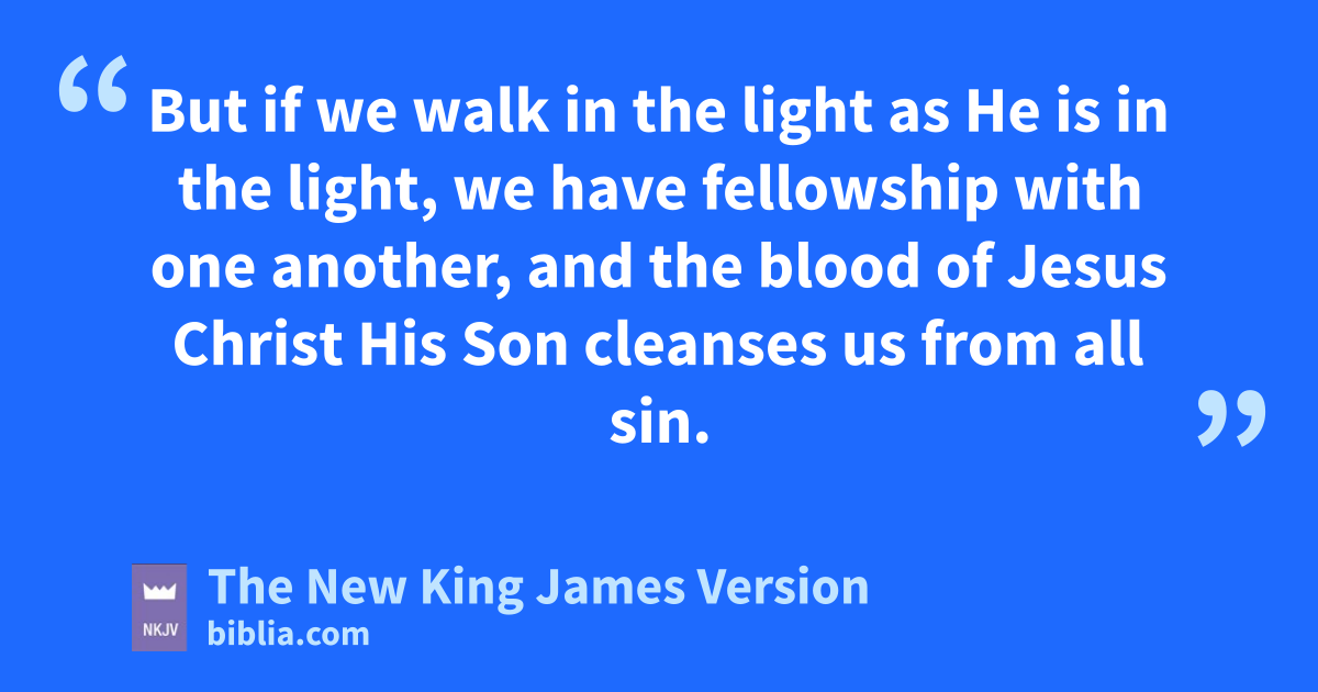 5 lThis is the message which we have heard from Him and declare to you, that mGod is light and in Him is no darkness at all. 6 nIf we say that we have fellowship with Him, and walk in darkness, we lie and do not practice the truth. 7 But if we owalk in the light as He is in the light, we have fellowship with one another, and pthe blood of Jesus Christ His Son cleanses us from all sin.