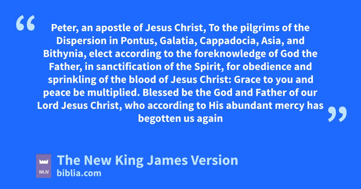 To the 1pilgrims aof the Dispersion in Pontus, Galatia, Cappadocia, Asia, and Bithynia, 2 belect caccording to the foreknowledge of God the Father, din sanctification of the Spirit, for eobedience and fsprinkling of the blood of Jesus Christ: