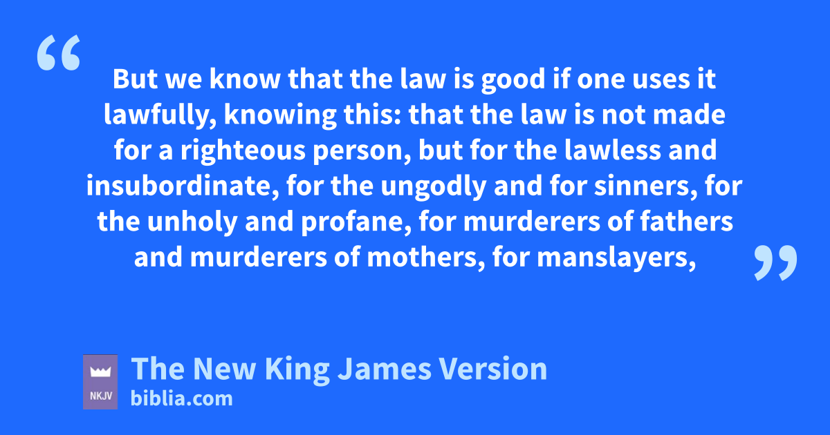 8 But we know that the law is igood if one uses it lawfully, 9 knowing this: that the law is not made for a righteous person, but for the lawless and insubordinate, for the ungodly and for sinners, for the unholy and profane, for murderers of fathers and murderers of mothers, for manslayers, 10 for fornicators, for sodomites, for kidnappers, for liars, for perjurers, and if there is any other thing that is 3contrary to sound doctrine, 11 according to the glorious gospel of the jblessed God which was kcommitted to my trust.