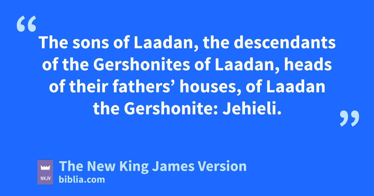 20 Of the Levites, Ahijah was hover the treasuries of the house of God and over the treasuries of the idedicated 7things. 21 The sons of 8Laadan, the descendants of the Gershonites of Laadan, heads of their fathers’ houses, of Laadan the Gershonite: 9Jehieli. 22 The sons of Jehieli, Zetham and Joel his brother, were over the treasuries of the house of the Lord. 23 Of the jAmramites, the Izharites, the Hebronites, and the Uzzielites: 24 kShebuel the son of Gershom, the son of Moses, was overseer of the treasuries. 25 And his brethren by Eliezer were Rehabiah his son, Jeshaiah his son, Joram his son, Zichri his son, and lShelomith his son.
