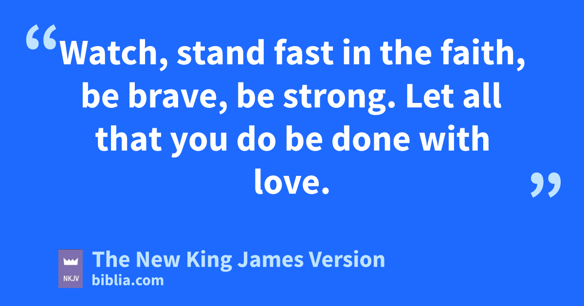 13 pWatch, qstand fast in the faith, be brave, rbe strong. 14 sLet all that you do be done with love.