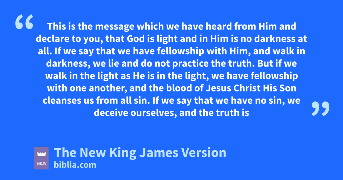 5 lThis is the message which we have heard from Him and declare to you, that mGod is light and in Him is no darkness at all. 6 nIf we say that we have fellowship with Him, and walk in darkness, we lie and do not practice the truth. 7 But if we owalk in the light as He is in the light, we have fellowship with one another, and pthe blood of Jesus Christ His Son cleanses us from all sin.