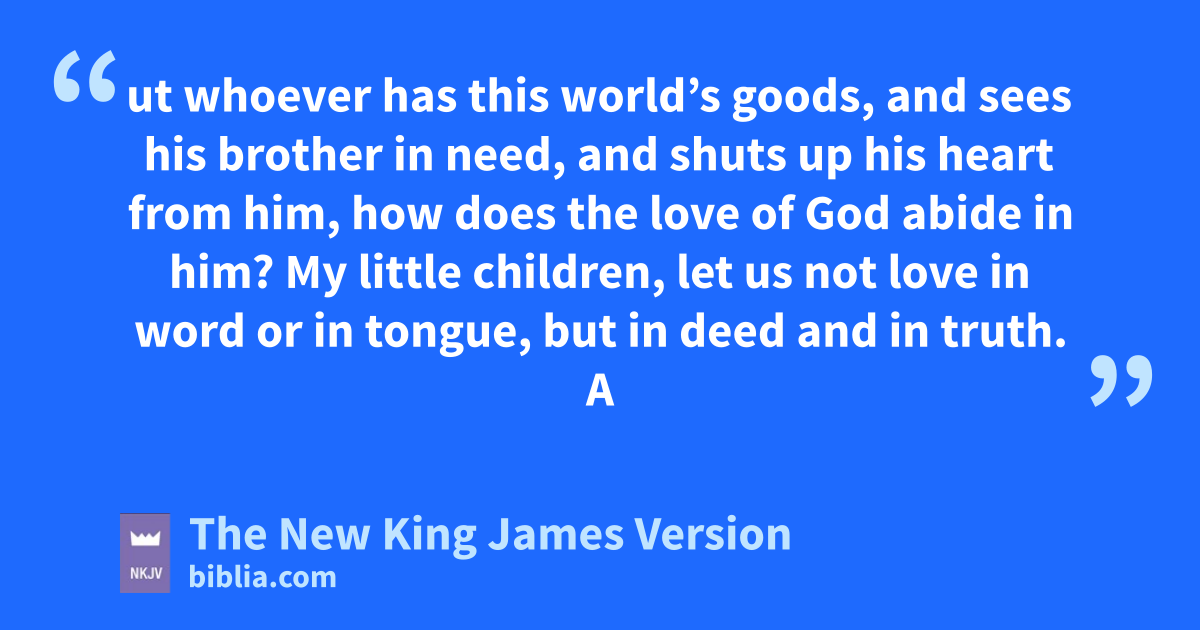 16 vBy this we know love, wbecause He laid down His life for us. And we also ought to lay down our lives for the brethren. 17 But xwhoever has this world’s goods, and sees his brother in need, and shuts up his heart from him, how does the love of God abide in him?