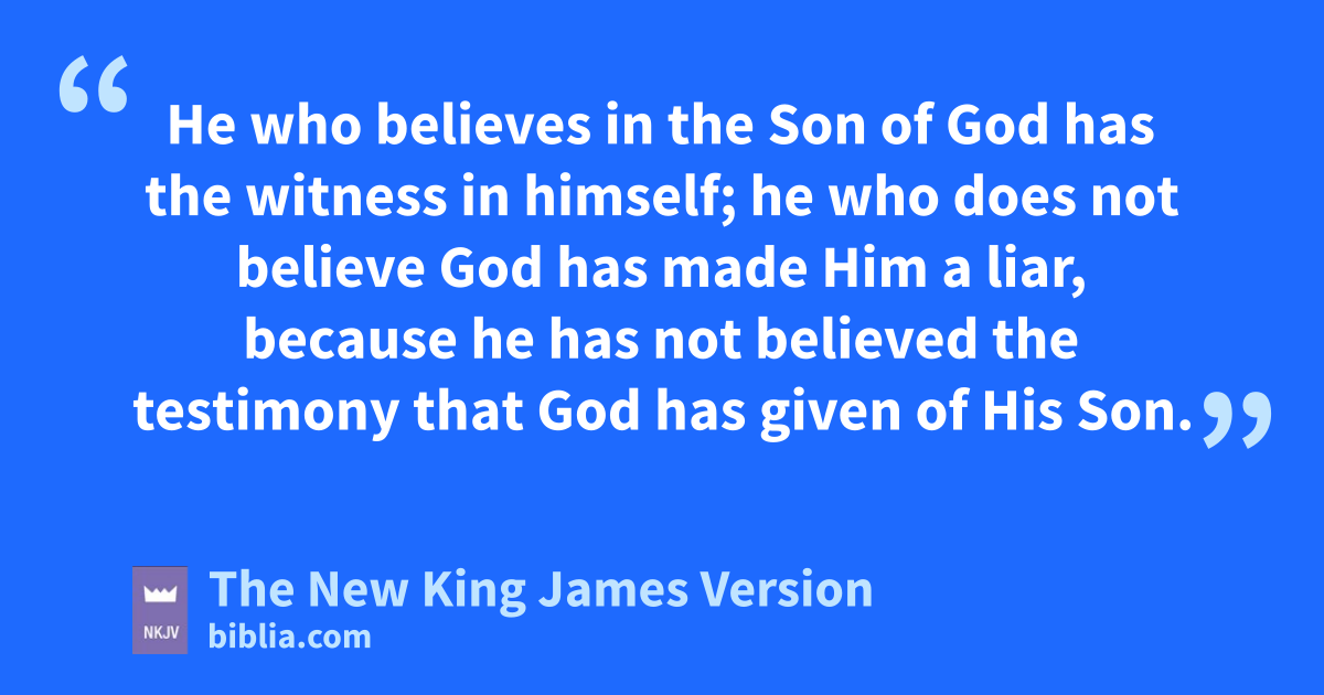 9 If we receive nthe witness of men, the witness of God is greater; ofor this is the witness of 3God which He has testified of His Son. 10 He who believes in the Son of God phas the witness in himself; he who does not believe God qhas made Him a liar, because he has not believed the testimony that God has given of His Son. 11 And this is the testimony: that God has given us eternal life, and this life is in His Son. 12 rHe who has the Son has 4life; he who does not have the Son of God does not have 4life. 13 These things I have written to you who believe in the name of the Son of God, that you may know that you have eternal life, 5and that you may continue to believe in the name of the Son of God.