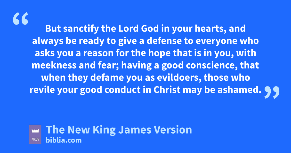 13 sAnd who is he who will harm you if you become followers of what is good? 14 tBut even if you should suffer for righteousness’ sake, you are blessed. u“And do not be afraid of their threats, nor be troubled.” 15 But 4sanctify 5the Lord God in your hearts, and always vbe ready to give a defense to everyone who asks you a reason for the whope that is in you, with meekness and fear; 16 xhaving a good conscience, that when they defame you as evildoers, those who revile your good conduct in Christ may be ashamed. 17 For it is better, if it is the will of God, to suffer for doing good than for doing evil.