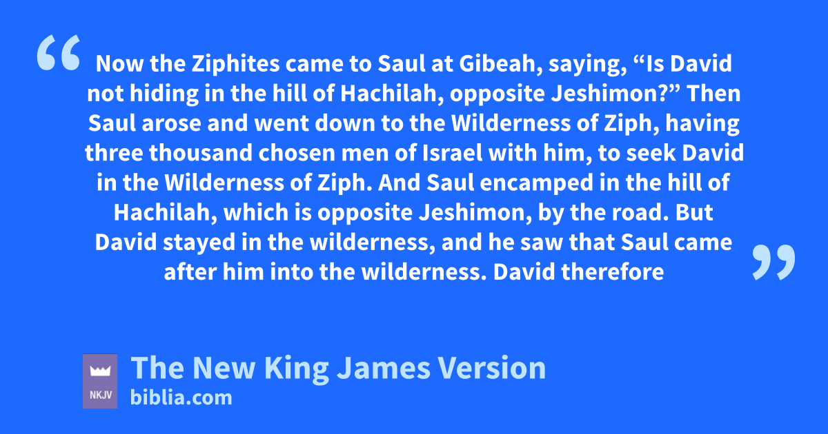 26 Now the Ziphites came to Saul at Gibeah, saying, a“Is David not hiding in the hill of Hachilah, opposite Jeshimon?” 2 Then Saul arose and went down to the Wilderness of Ziph, having bthree thousand chosen men of Israel with him, to seek David in the Wilderness of Ziph. 3 And Saul encamped in the hill of Hachilah, which is opposite Jeshimon, by the road. But David stayed in the wilderness, and he saw that Saul came after him into the wilderness. 4 David therefore sent out spies, and understood that Saul had indeed come.
