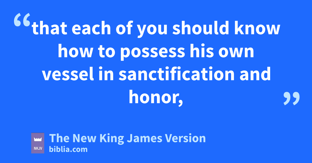 3 For this is cthe will of God, dyour sanctification: ethat you should abstain from sexual immorality; 4 fthat each of you should know how to possess his own vessel in sanctification and honor, 5 gnot in passion of lust, hlike the Gentiles iwho do not know God; 6 that no one should take advantage of and defraud his brother in this matter, because the Lord jis the avenger of all such, as we also forewarned you and testified. 7 For God did not call us to uncleanness, kbut in holiness. 8 lTherefore he who rejects this does not reject man, but God, mwho 1has also given us His Holy Spirit.