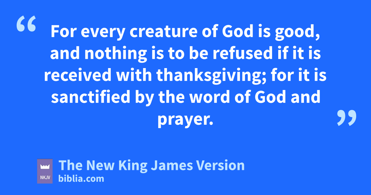 4 Now the Spirit 1expressly says that in latter times some will depart from the faith, giving heed ato deceiving spirits and doctrines of demons, 2 bspeaking lies in hypocrisy, having their own conscience cseared with a hot iron, 3 forbidding to marry, and commanding to abstain from foods which God created to be received with thanksgiving by those who believe and know the truth. 4 For every creature of God is good, and nothing is to be refused if it is received with thanksgiving; 5 for it is 2sanctified by the word of God and prayer.