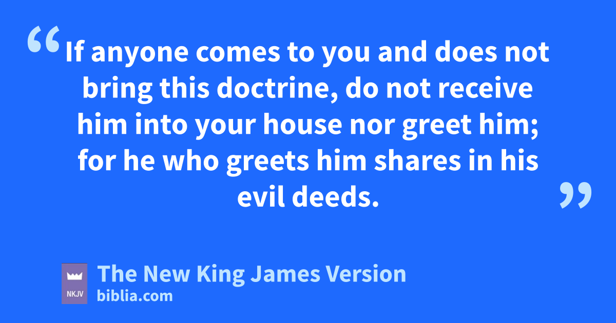 9 lWhoever 4transgresses and does not abide in the doctrine of Christ does not have God. He who abides in the doctrine of Christ has both the Father and the Son. 10 If anyone comes to you and mdoes not bring this doctrine, do not receive him into your house nor greet him; 11 for he who greets him shares in his evil deeds.