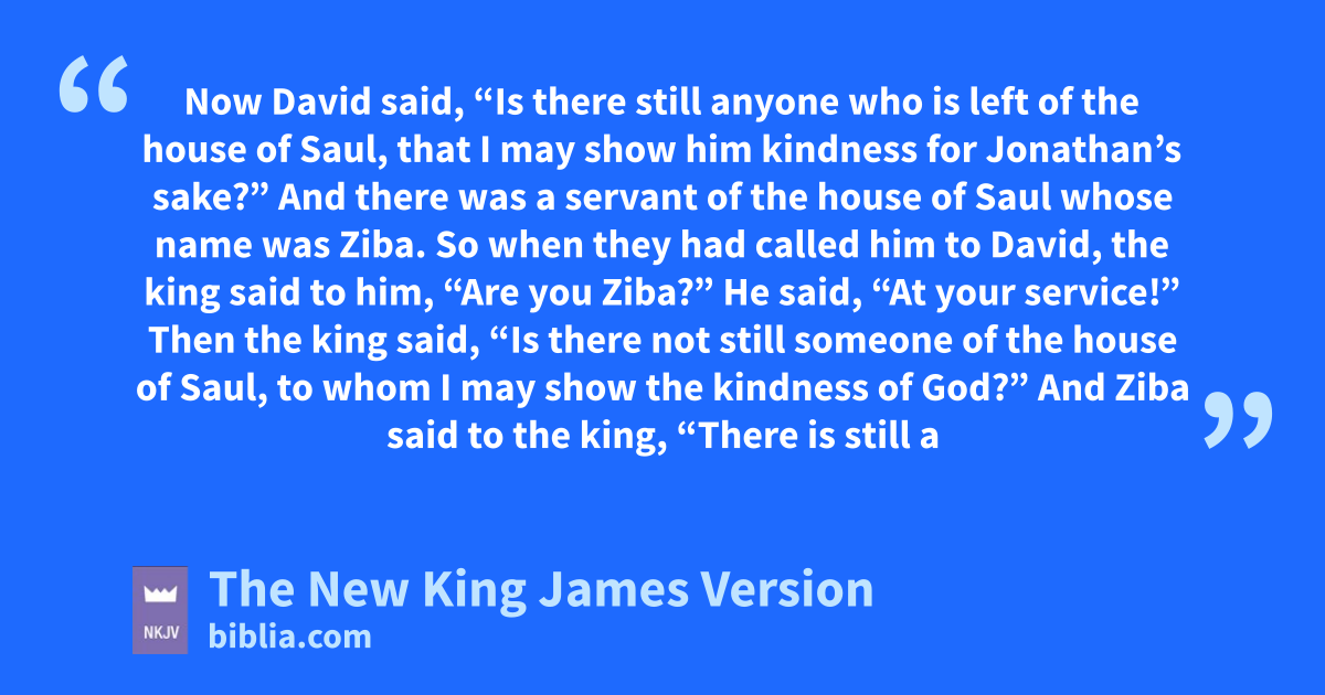 9 Now David said, “Is there still anyone who is left of the house of Saul, that I may ashow him 1kindness for Jonathan’s sake?”