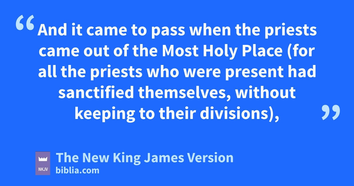 11 And it came to pass when the priests came out of the Most Holy Place (for all the priests who were present had 4sanctified themselves, without keeping to their jdivisions), 12 kand the Levites who were the singers, all those of Asaph and Heman and Jeduthun, with their sons and their brethren, stood at the east end of the altar, clothed in white linen, having cymbals, stringed instruments and harps, land with them one hundred and twenty priests sounding with trumpets—13 indeed it came to pass, when the trumpeters and singers were as one, to make one sound to be heard in praising and thanking the Lord, and when they lifted up their voice with the trumpets and cymbals and instruments of music, and praised the Lord, saying: