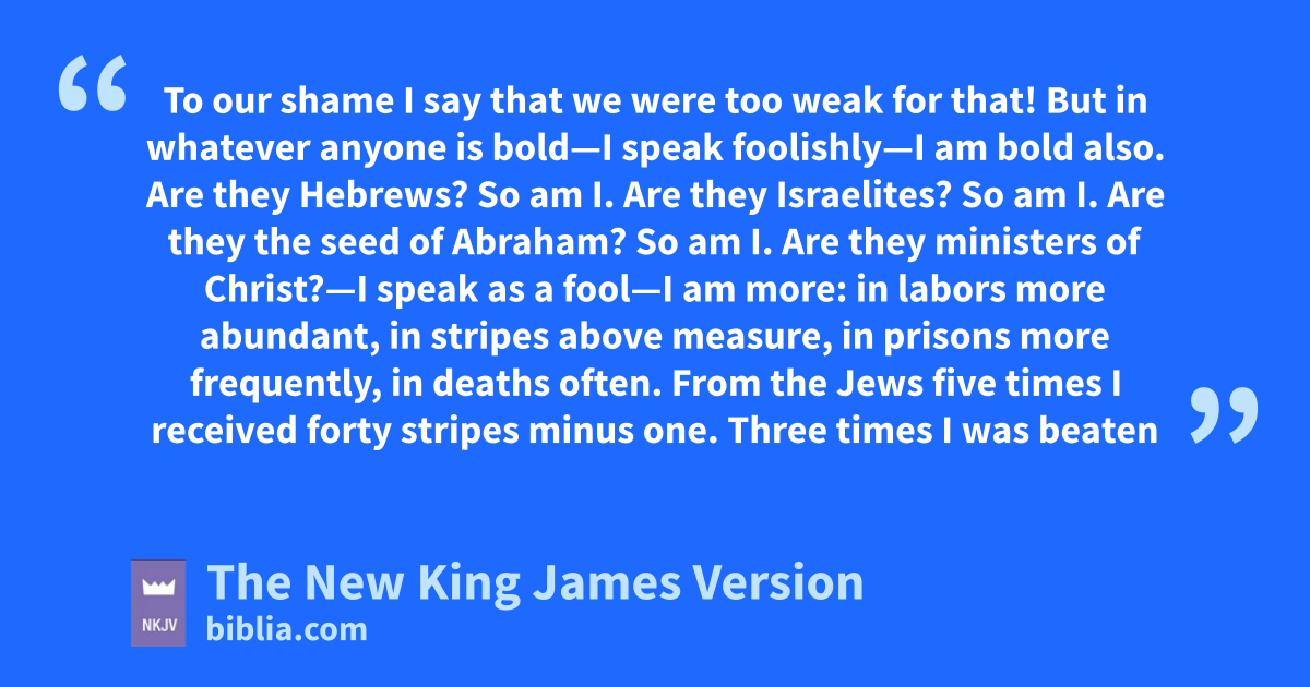 16 I say again, let no one think me a fool. If otherwise, at least receive me as a fool, that I also may boast a little. 17 What I speak, xI speak not according to the Lord, but as it were, foolishly, in this confidence of boasting. 18 Seeing that many boast according to the flesh, I also will boast. 19 For you put up with fools gladly, ysince you yourselves are wise! 20 For you put up with it zif one brings you into bondage, if one devours you, if one takes from you, if one exalts himself, if one strikes you on the face. 21 To our shame aI say that we were too weak for that! But bin whatever anyone is bold—I speak foolishly—I am bold also.