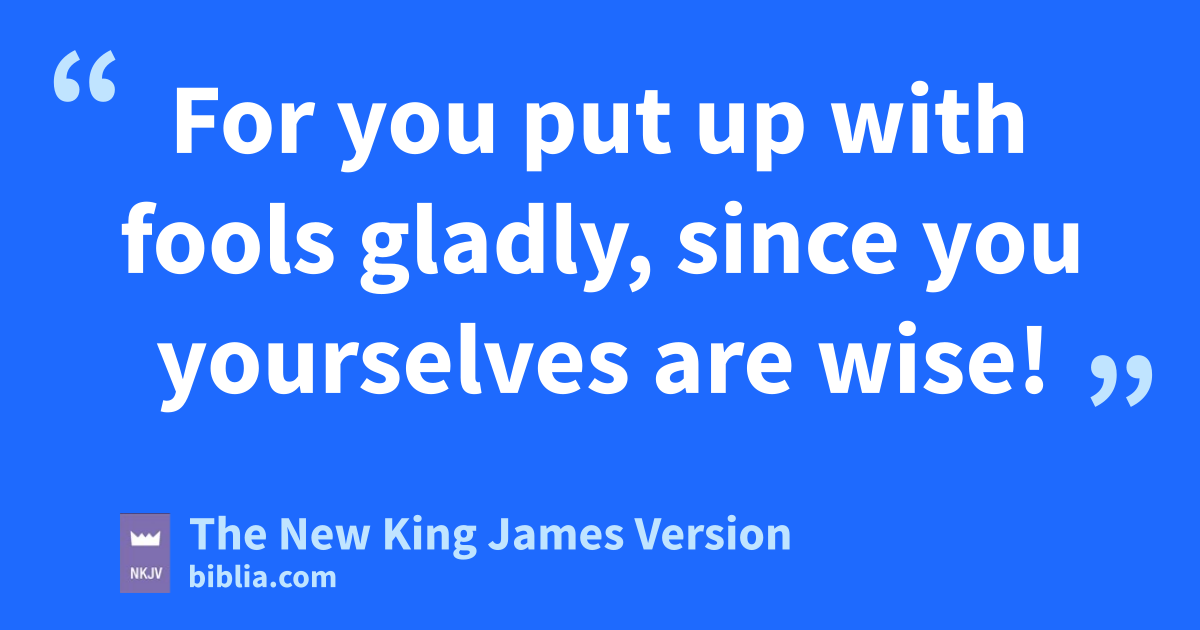 16 I say again, let no one think me a fool. If otherwise, at least receive me as a fool, that I also may boast a little. 17 What I speak, xI speak not according to the Lord, but as it were, foolishly, in this confidence of boasting. 18 Seeing that many boast according to the flesh, I also will boast. 19 For you put up with fools gladly, ysince you yourselves are wise! 20 For you put up with it zif one brings you into bondage, if one devours you, if one takes from you, if one exalts himself, if one strikes you on the face. 21 To our shame aI say that we were too weak for that! But bin whatever anyone is bold—I speak foolishly—I am bold also.