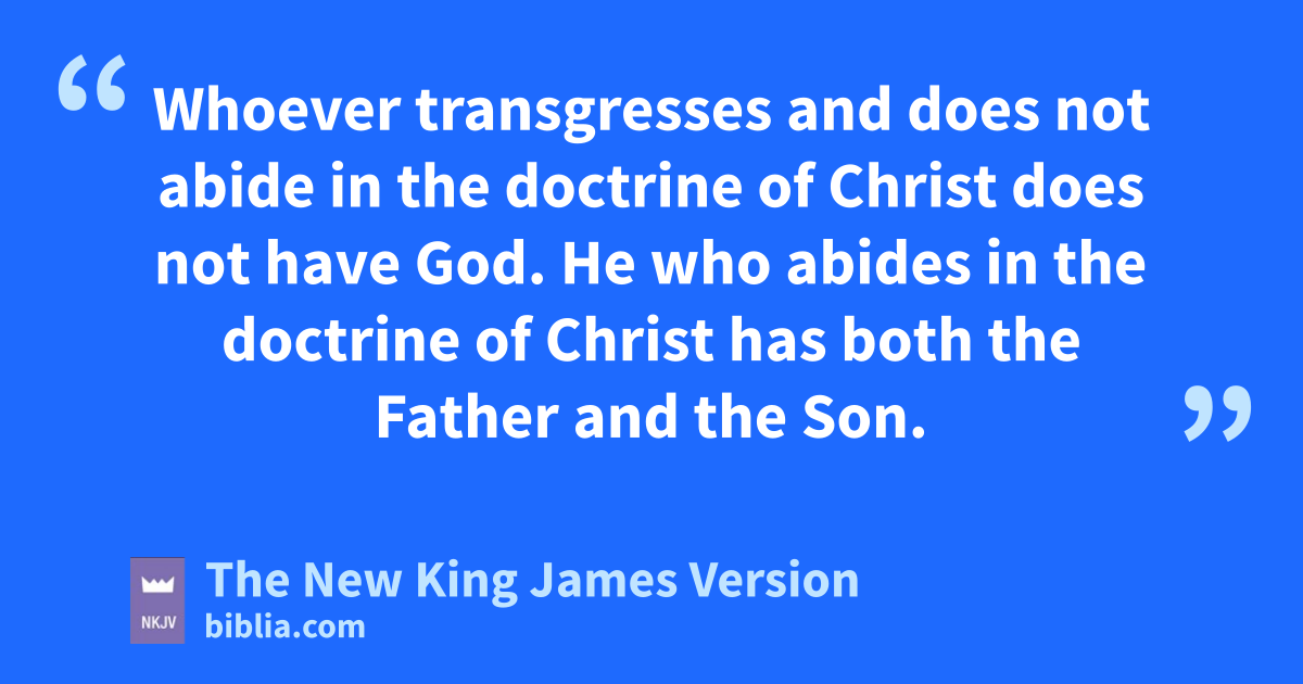 9 lWhoever 4transgresses and does not abide in the doctrine of Christ does not have God. He who abides in the doctrine of Christ has both the Father and the Son. 10 If anyone comes to you and mdoes not bring this doctrine, do not receive him into your house nor greet him; 11 for he who greets him shares in his evil deeds.