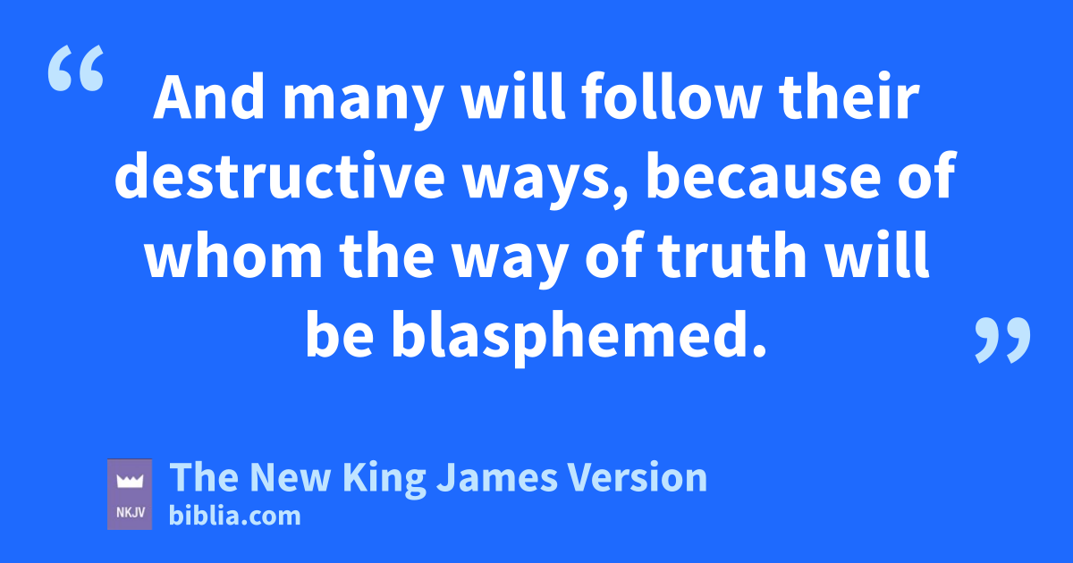 2 But there were also false prophets among the people, even as there will be afalse teachers among you, who will secretly bring in destructive heresies, even denying the Lord who bought them, and bring on themselves swift destruction. 2 And many will follow their destructive ways, because of whom the way of truth will be blasphemed. 3 By covetousness they will exploit you with deceptive words; for a long time their judgment has not been idle, and their destruction 1does not slumber.
