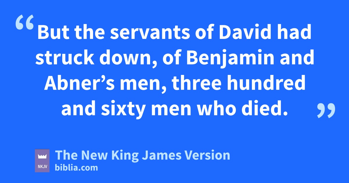 30 So Joab returned from pursuing Abner. And when he had gathered all the people together, there were missing of David’s servants nineteen men and Asahel. 31 But the servants of David had struck down, of Benjamin and Abner’s men, three hundred and sixty men who died. 32 Then they took up Asahel and buried him in his father’s tomb, which was in yBethlehem. And Joab and his men went all night, and they came to Hebron at daybreak.