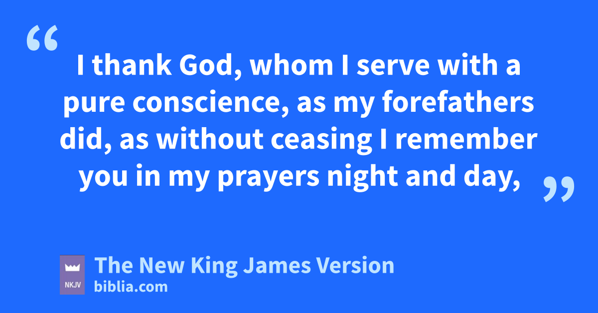 3 I thank God, whom I serve with a pure conscience, as my cforefathers did, as without ceasing I remember you in my prayers night and day, 4 greatly desiring to see you, being mindful of your tears, that I may be filled with joy, 5 when I call to remembrance dthe 2genuine faith that is in you, which dwelt first in your grandmother Lois and eyour mother Eunice, and I am persuaded is in you also. 6 Therefore I remind you fto stir up the gift of God which is in you through the laying on of my hands. 7 For gGod has not given us a spirit of fear, hbut of power and of love and of a sound mind.