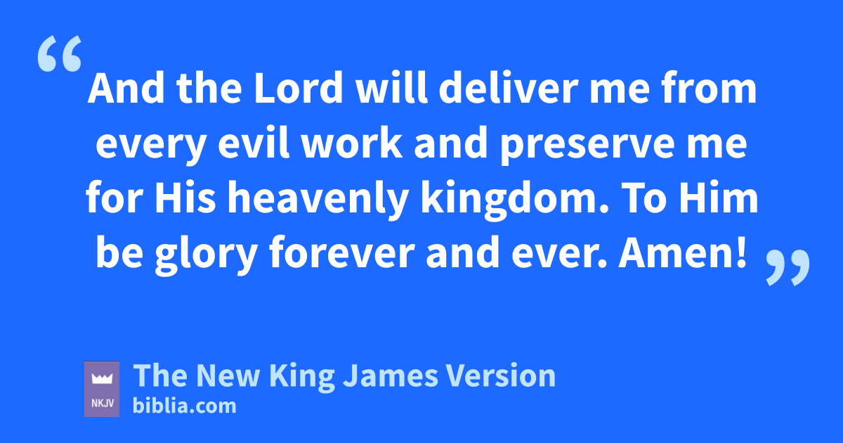 17 xBut the Lord stood with me and strengthened me, yso that the message might be preached fully through me, and that all the Gentiles might hear. Also I was delivered zout of the mouth of the lion. 18 aAnd the Lord will deliver me from every evil work and preserve me for His heavenly kingdom. bTo Him be glory forever and ever. Amen!