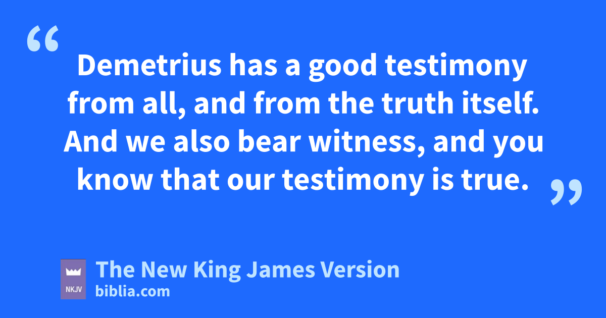 12 Demetrius khas a good testimony from all, and from the truth itself. And we also 6bear witness, land you know that our testimony is true.