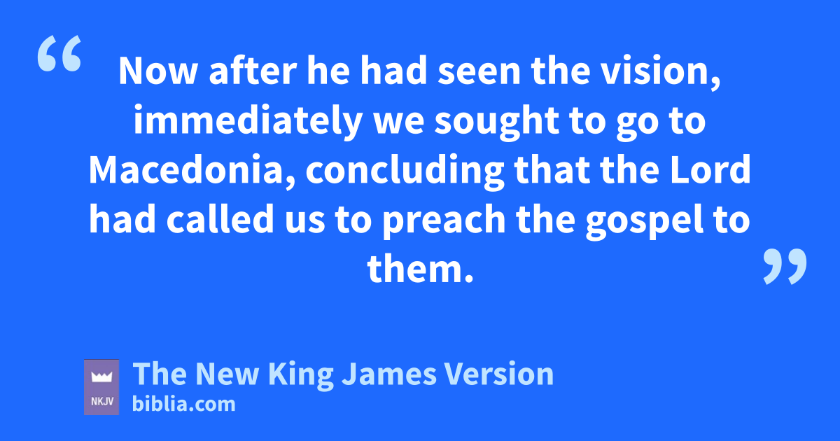 6 Now when they had gone through Phrygia and the region of hGalatia, they were forbidden by the Holy Spirit to preach the word in 1Asia. 7 After they had come to Mysia, they tried to go into Bithynia, but the 2Spirit did not permit them. 8 So passing by Mysia, they icame down to Troas. 9 And a vision appeared to Paul in the night. A jman of Macedonia stood and pleaded with him, saying, “Come over to Macedonia and help us.” 10 Now after he had seen the vision, immediately we sought to go kto Macedonia, concluding that the Lord had called us to preach the gospel to them.