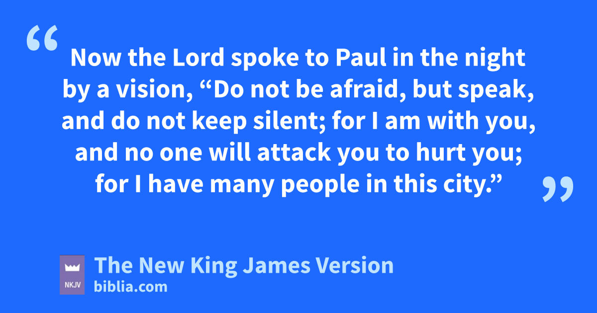 9 Now lthe Lord spoke to Paul in the night by a vision, “Do not be afraid, but speak, and do not keep silent; 10 mfor I am with you, and no one will attack you to hurt you; for I have many people in this city.” 11 And he continued there a year and six months, teaching the word of God among them.