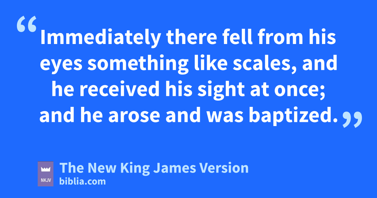 17 pAnd Ananias went his way and entered the house; and qlaying his hands on him he said, “Brother Saul, the Lord 4Jesus, who appeared to you on the road as you came, has sent me that you may receive your sight and rbe filled with the Holy Spirit.” 18 Immediately there fell from his eyes something like scales, and he received his sight at once; and he arose and was baptized.